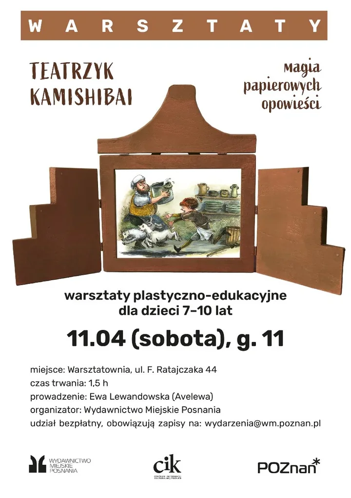 Wydawnictwo Miejskie Posnania szykuje dla najmłodszych spotkanie, które łączy rysowanie, opowieści i odrobinę scenicznej magii 🎭📚. W Warsztatowni przy Ratajczaka dzieci nie tylko posłuchają o kamishibai, ale też same spróbują zamienić poznańską legendę w obrazkową historię.