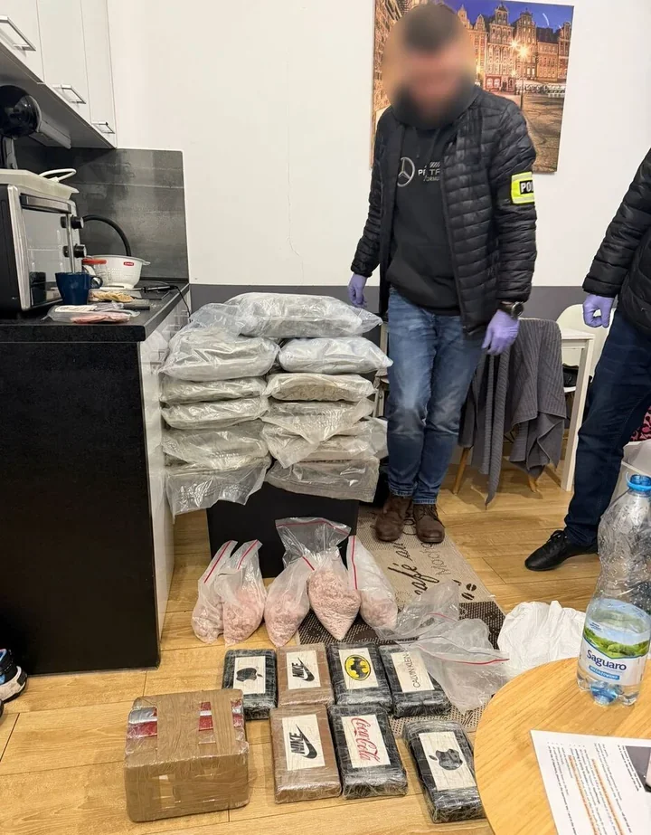 Podczas przeszukania lokalu policjanci trafili na ogromny zapas środków odurzających i psychotropowych. Zabezpieczyli 7 kilogramów 3-CMC, 14 kilogramów kokainy oraz 15 kilogramów marihuany. Na miejscu pracowali także funkcjonariusze z Komisariatu Policji Poznań Stare Miasto, technik kryminalistyki z KMP w Poznaniu oraz policjanci z Wydziału do walki z Przestępczością Narkotykową KWP w Poznaniu.