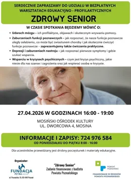 Organizatorzy odsyłają też do plakatów z dodatkowymi informacjami. Dla wielu starszych osób takie spotkania mają znaczenie szersze niż jednorazowa porada. To często pierwszy moment, w którym można spokojnie nazwać to, co od dawna ciąży, i usłyszeć, że z trudnościami psychicznymi nie trzeba zostawać samemu.