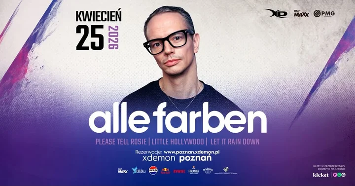Alle Farben, twórca takich hitów jak „Please Tell Rosie”, „Bad Ideas” i „Freedom”, po raz pierwszy zagra w X-Demon Poznań — będzie melodycznie, tanecznie i energetycznie. Warto zarezerwować sobie ten wieczór!