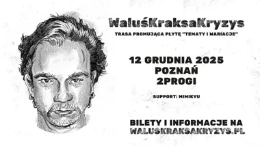 WaluśKraksaKryzys wystąpi w Poznaniu w ramach jesienno-zimowej trasy klubowej promującej nowy album. To wydarzenie skierowane do fanów alternatywnego rocka i osób śledzących działalność artysty; na scenie pojawi się także support z Szczecina. Koncert odbędzie się w klubie 2Progi, bilety są dostępne w sprzedaży u organizatora.